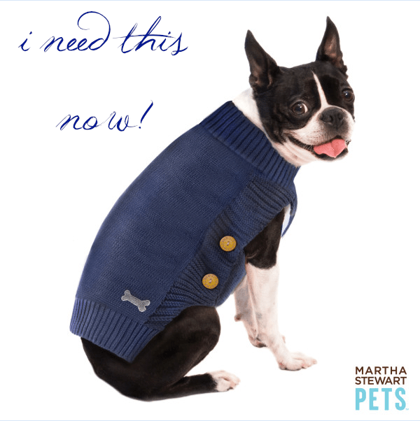 i’d wear this cardigan from martha stewart! i recently adopted a toy fox terrier & this little cardigan is incredibly modern for doggy clothing. yes, i’ve become one of “those” people, but at least you won’t see a cheesy t-shirt on my puppy. it just isn’t my style.